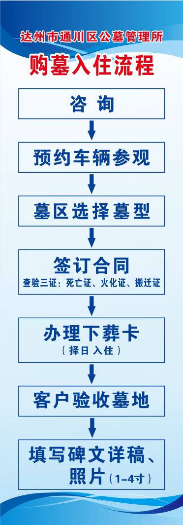 | 一、前期咨询与规划 可通过通川区民政局官网、公墓管理所官方微信公众号或拨打服务热线(0818-2378178),了解墓园服务项目、墓型价格、管理规定等信息。同时,结合家庭预算、风水偏好及情感需求,初步规划购墓意向。若有特殊需求,如家族合葬墓,可提前与工作人员沟通可行性。 二、实地考察与墓位选择 携带身份证前往墓园实地考察,工作人员将陪同介绍墓区环境、墓型特点及可选墓位。考察时,重点关注墓区交通便利性、安保措施、卫生维护情况,以及墓位的朝向、采光、周边景观等。确定墓型与位置后,工作人员会开具《墓位预定单》,缴纳少量定金锁定墓位,定金可冲抵后续费用。 三、手续办理与合同签订 (一)材料准备 为已故逝者购墓,需提供逝者身份证、死亡证明或火化证明原件及复印件,购买者身份证原件及复印件; 为健在老人购寿墓,除提供老人与购买者身份证,还需按规定提供 80 周岁以上证明、孤寡老人证明或医院绝症诊断证明等。 (二)签订合同 仔细阅读《墓穴使用合同》,明确墓位使用期限、管理费标准(一般按年收取,首次缴纳多年有优惠)、双方权利义务及违约责任。合同签订后,管理所将发放《墓穴使用证》,作为合法使用凭证。 (三)费用缴纳 按合同约定支付墓位款、管理费、碑文制作费等,支持现金、银行卡、移动支付等多种方式。缴费后妥善保存发票,以便后续查询与核对。 四、碑文设计与制作 提供逝者姓名、生卒年月、生平简介等信息,可选择管理所提供的标准碑文模板,或提出个性化设计需求。设计方案经确认后,管理所将在 15 - 20 个工作日内完成制作,确保文字准确、雕刻清晰。 五、墓位验收与交接 制作完成后,管理所将通知验收。现场检查墓位尺寸、墓碑材质、雕刻工艺、周边环境等是否符合合同要求。验收通过后,双方签字确认完成交接;若存在问题,及时提出整改,直至达标。 六、骨灰安葬服务 提前 3 - 5 个工作日预约安葬时间,管理所将安排专人协助办理安葬手续,提供安葬仪式场地布置、礼仪指导等服务。安葬当日,携带《墓穴使用证》《火化证明》等,按流程完成骨灰安放,领取《安葬证书》。 七、后续服务与管理 购墓后,管理所提供日常保洁、绿化养护、墓碑维护等服务。管理费到期前,管理所将提前通知续费,可通过线上或线下方式办理。若对墓位进行改建、修缮,需提前向管理所申请,经批准后方可施工。 |